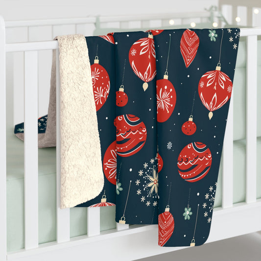 Christmas Ornaments Sherpa Blanket, Winter Holiday Red Fleece Blanket, Cozy Throw Blanket, Holiday Gift