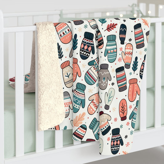Vintage Colorful Mittens Sherpa Fleece Blanket, Winter Sherpa Blanket White