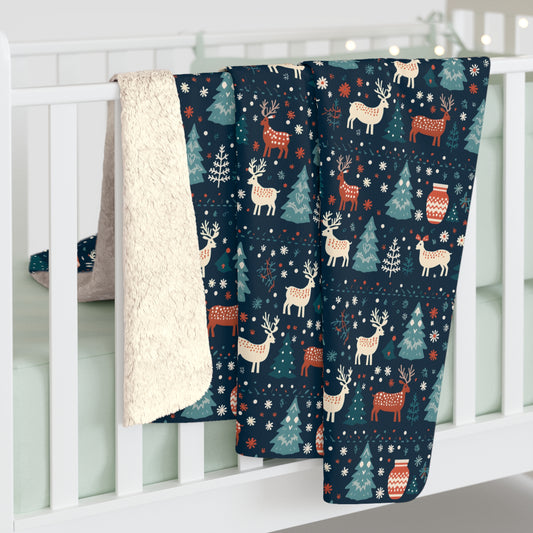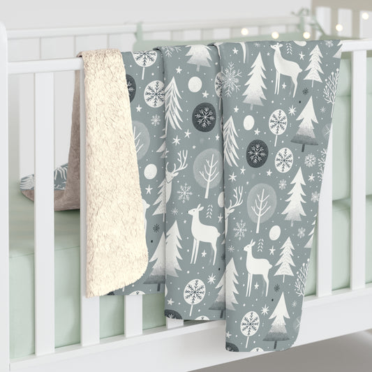 Reindeer Winter Wonderland Blanket, Gray Sherpa Throw, Christmas Gift