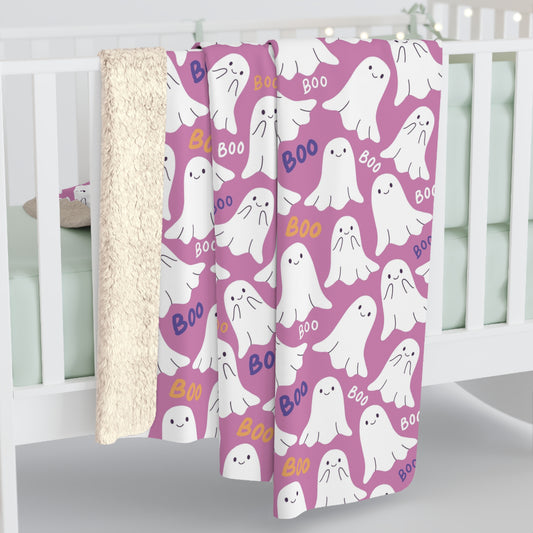 BOO Ghost Pink Sherpa Fleece Blanket, Halloween Ghost Throw Blanket