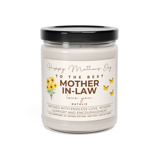 Personalized Candle for Mother-In-Law, Happy Mother's Day Gift (H) Gift for Moms, 100% Vegan Soy Wax Scented Candle, Eco-Friendly
