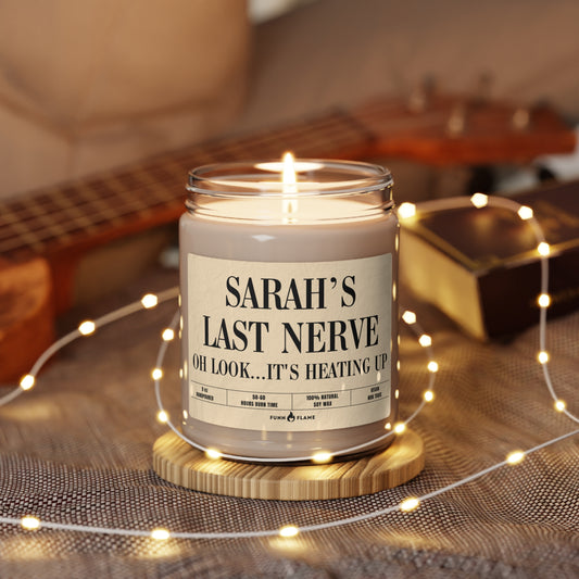 Funny Custom Candle, Last Nerve, Personalized Name Candle Gift (Beige) Custom Name Candle, Funny Gift, 100% Vegan Soy Wax Scented Candle, Eco-Friendly