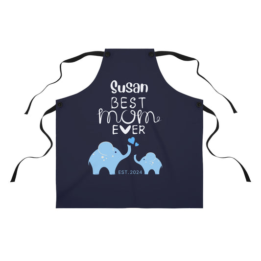 Personalized Best Mom Ever Gift Apron Blue Elephants, Gift for Mom Chef Apron