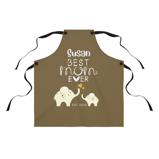 Personalized Best Mom Ever Gift Apron Khaki Elephants, Gift for Mom Chef Apron