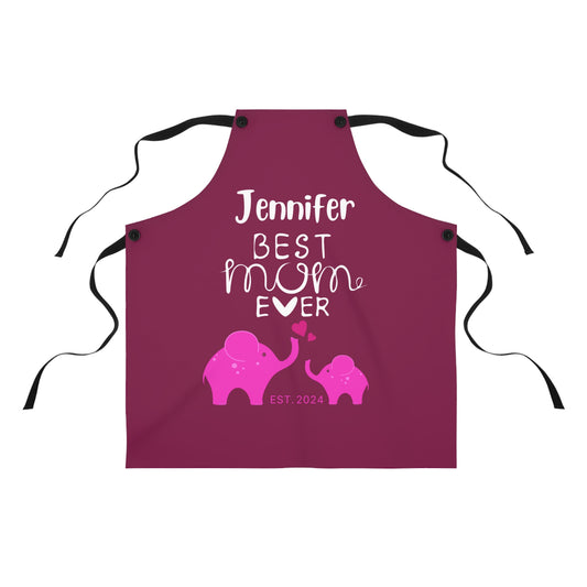 Personalized Best Mom Ever Gift Apron Pink Elephants, Gift for Mom Chef Apron