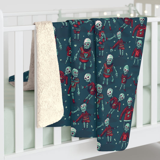 Festive Zombie Sherpa Blanket, Zombies Throw Blanket, Living Dead Undead Blanket