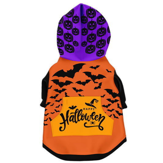 Halloween Dog Hoodie Costume with Bats, Skulls, Pumpkins Zip-Up Pet Hoodie