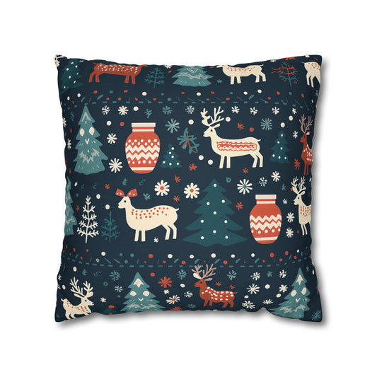 Holiday Pillowcase, Winter Accent Pillow Case with Reindeers, Christmas Trees, Snowflakes, Holiday Gift