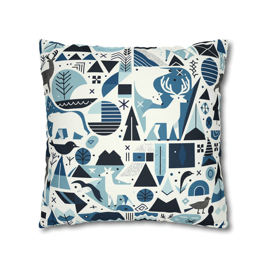 Frozen Forrest Pillowcase, Abstract Blue Pillow Case with Bears, Deers, Winter Pillow Cover
