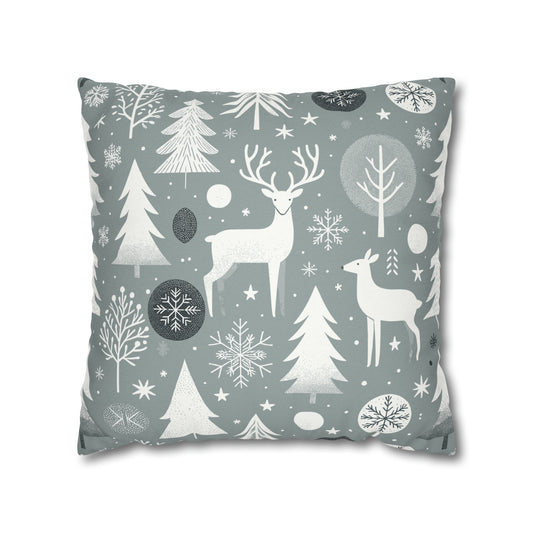 Reindeer Winter Wonderland Pillowcase Gray Holiday Pillow Christmas Gift, Holiday Gift (B)