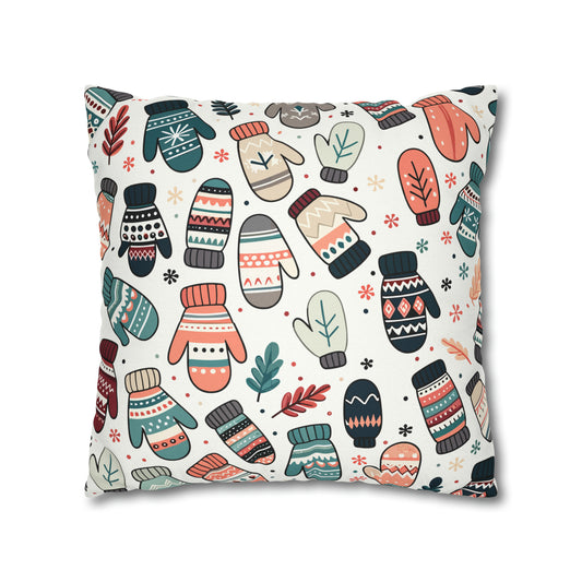 Winter Pillowcase, Winter Accent Pillow Cover, Holiday Home Décor, Wintre Mittens Colorful Pillow, Holiday Gift (B)