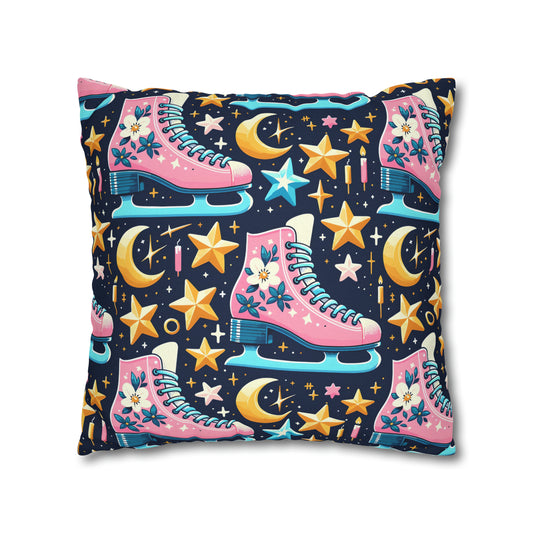 Roller Skates Pillowcase, 80s Vintage Retro Skates Pink Pillow Cover