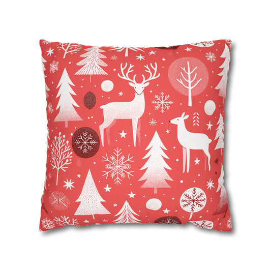 Red Holiday Pillowcase, Winter Pillow Case with Deers, Christmas Trees & Snowflakes, Holiday Gift