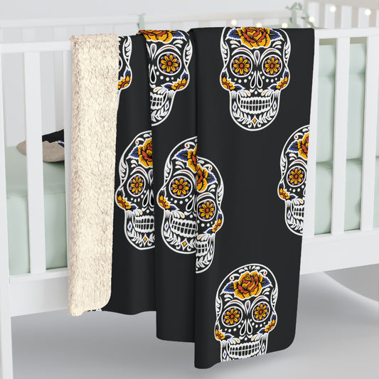 Sugar Skull Sherpa Blanket, Day of the Dead Blanket, Halloween B&W Throw Blanket