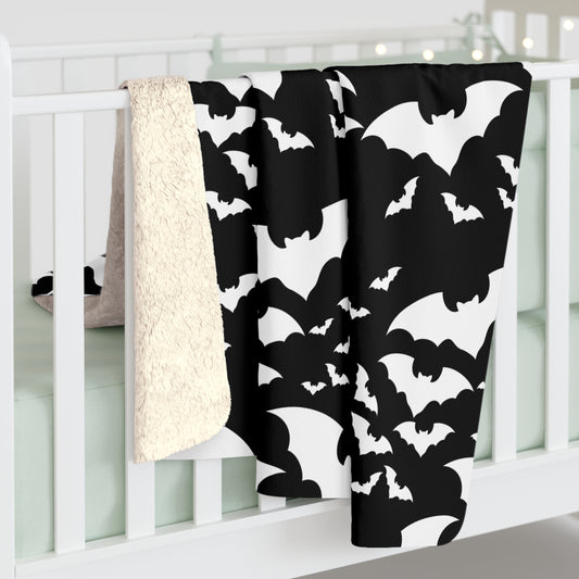 Spooky Bats Sherpa Fleece Blanket, Halloween Gothic Throw Blanket B&W