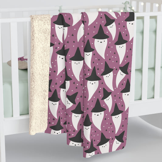 Purple Ghost Sherpa Fleece Blanket, Halloween Throw Blanket, Ghosts
