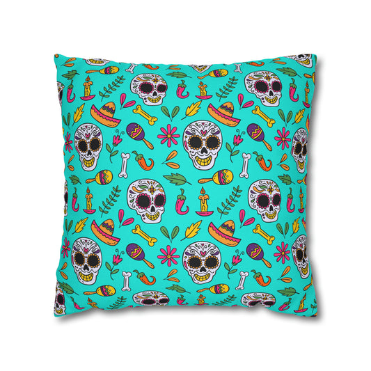 Sugar Skull Pillowcase, Day of the Dead Pillow Cover, Dia de Los Muertos Pillow, Halloween Pillow, Turquoise Decorative Square Pillow
