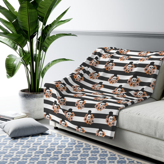 Gothic Sugar Skull Sherpa Fleece Blanket, Day of the Dead Purple Throw Blanket