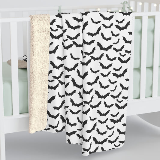 Spooky Bats Sherpa Fleece Blanket, Halloween Throw Blanket B&W Blanket