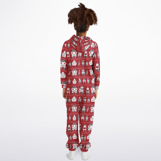 Teens Robots Red Onesie, Union Suit Athletic Jumpsuit for Gamers Tech Enthusiasts