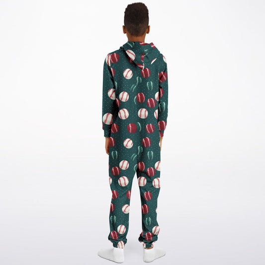 Teens Baseball-Themed Onesie, Union Suit Green Athletic Jumpsuit