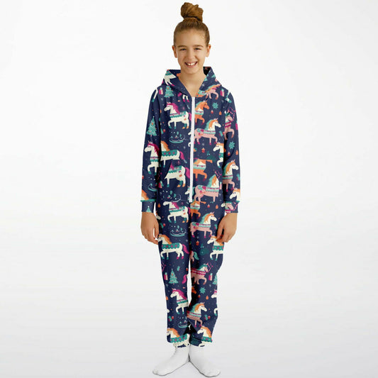 Magical Unicorn Teens Onesie, Kids Union Suit Blue Athletic Jumpsuit