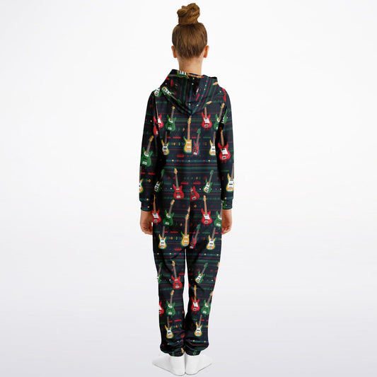 Rockstar Electric Guitars Teens Onesie, Colorful Guitars Blue Athletic Jumpsuit