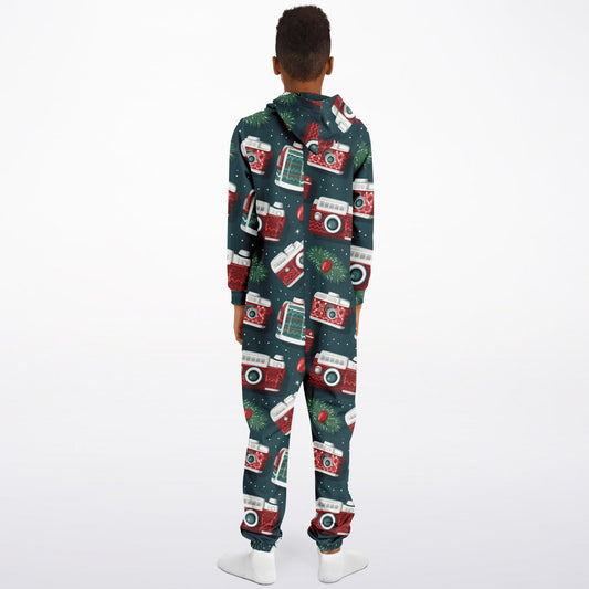 Vintage Camera Holiday Teens Onesie: Boys & Girls Union Suit Athletic Green Jumpsuit
