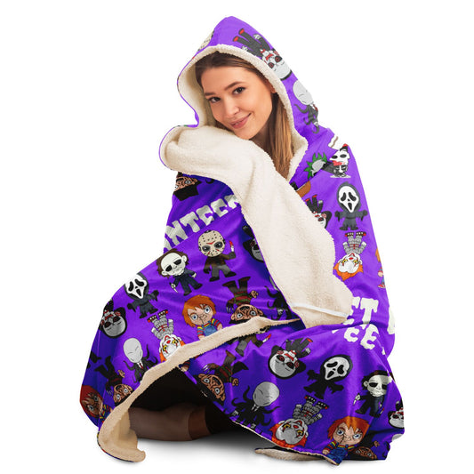 Wrap yourself in Halloween spirit with our Hooded Blankets! They're like a giant hoodie and a snuggly blanket had a baby! Made with love, silky-smooth micro-mink outside and your choice of ultra-soft Microfiber Fleece or plush Sherpa lining inside.  Gender neutral, flawless graphics, made to order. But beware: once you try it, you won't want to take it off!