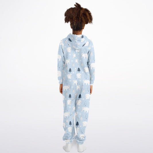 Polar Bears Winter Teens Onesie: Boys & Girls Union Suit Athletic Blue & White Jumpsuit