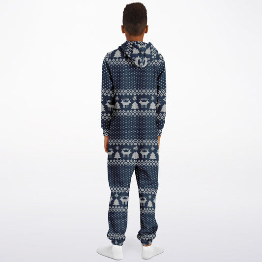 Winter Magic Christmas Teens Onesie: Boys & Girls Union Suit Athletic Blue Jumpsuit