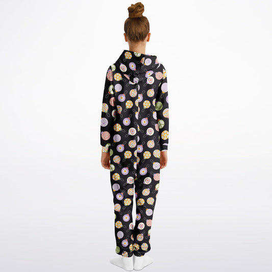 Colorful Christmas Ornaments Teens Onesie: Boys & Girls Union Suit Athletic Black Jumpsuit