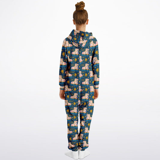 Holiday Santa & Friends Teens Onesie: Boys & Girls Union Suit Athletic Blue Jumpsuit