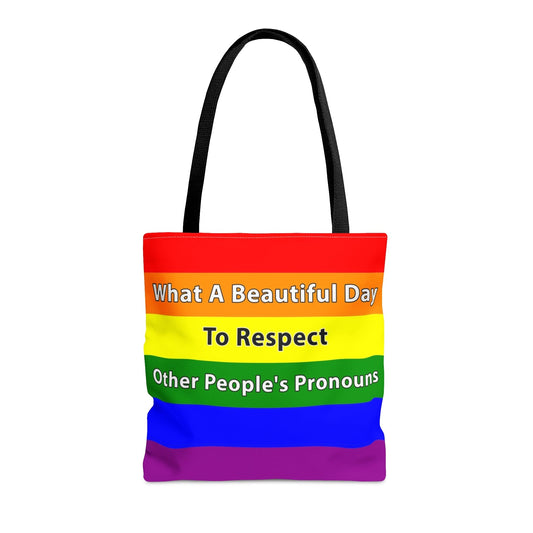 What A Beautiful Day to Respect Other People's Pronouns Tote Pride Equality LGBTQ+ Bag