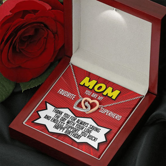 Mom You Are My Superhero Birthday Gift Joined Heart Rose Gold Necklace