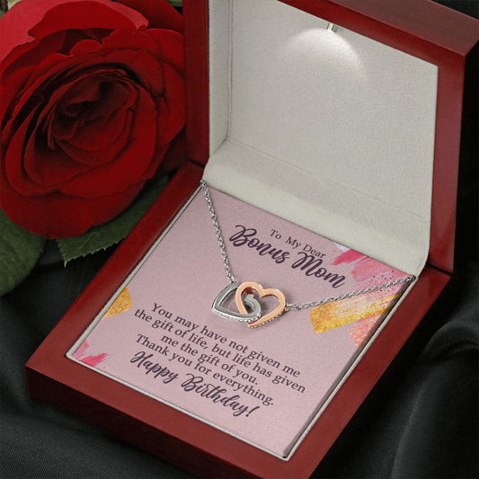 To My Dear Bonus Mom Birthday Gift Interlocking Heart Rose Gold Necklace