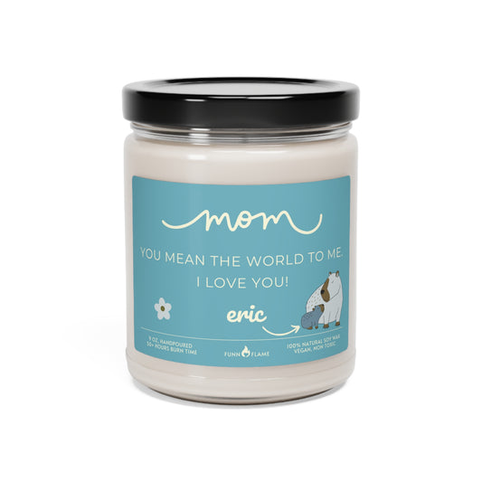 Personalized Mom Capybara Candle, Mother's Day Gift, Birthday, Blue, 100% Vegan Soy Wax Scented Candle, Eco-Friendly