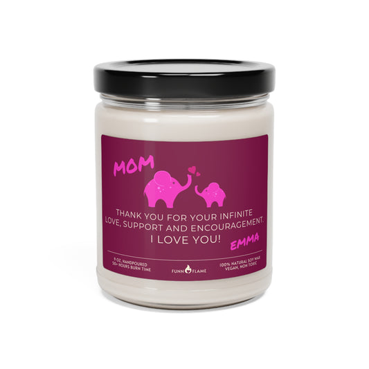 Personalized Mom Candle, Elephant Candle, Custom Gift for Mom (Pink), Nursery Candle, New Mom, Birthday Baby Shower Mothers Day Gift 100% Vegan