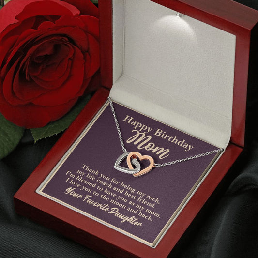 Happy Birthday Mom From Daughter Interlocking Heart Rose Gold Necklace