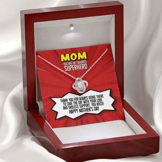 Mom You Are My Favorite Superhero Love Knot Necklace, Mothers Day Gift