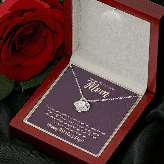 World's Best Mom Love Knot Necklace, Mothers Day Gift from Daughter Son