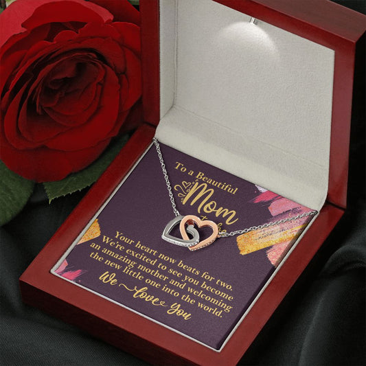 To My Beautiful Mom Interlocking Heart Rose Gold Necklace Gift for Mom