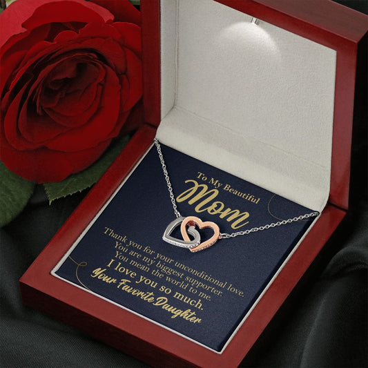 To My Beautiful Mom Interlocking Heart Necklace Gift From Favorite Son