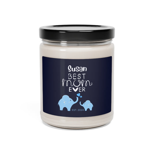 Best Mom Ever Candle, Custom Gift for Mother Mom & Baby Elephants Blue, 100% Vegan Soy Wax Scented Candle, Eco-Friendly