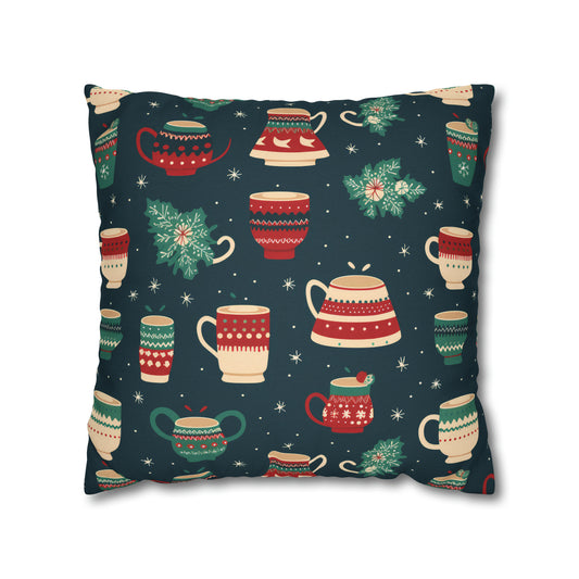 Hot Chocolate Pillowcase, Winter Accent Blue Pillow, Christmast Decoration, Christmas Gift