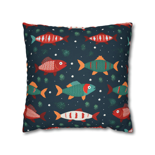 Marine Life Pillowcase, Fish Print Underwater Ocean Blue Pillow Cover Coastal Décor