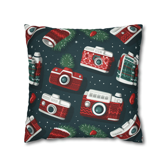 Vintage Camera Holiday Green Retro Pillow Case, Christmas Pillow Throw, Holiday Gift