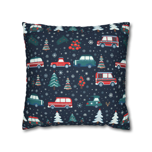 Vanlife Pillow, Camping Holiday Spirit Pillow Case, Cars, Vans & Christmas Trees Décor Blue Pillow Cover, Holiday Gift