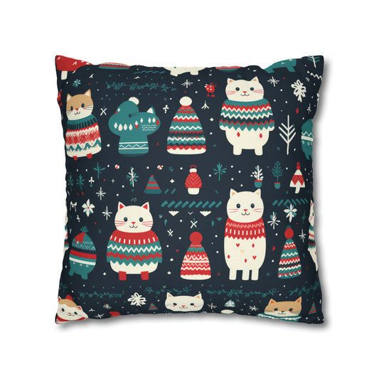 Cute Cat Pillowcase Holiday Christmas Cat Lovers Gift Blue Pillow Throw, Holiday Gift