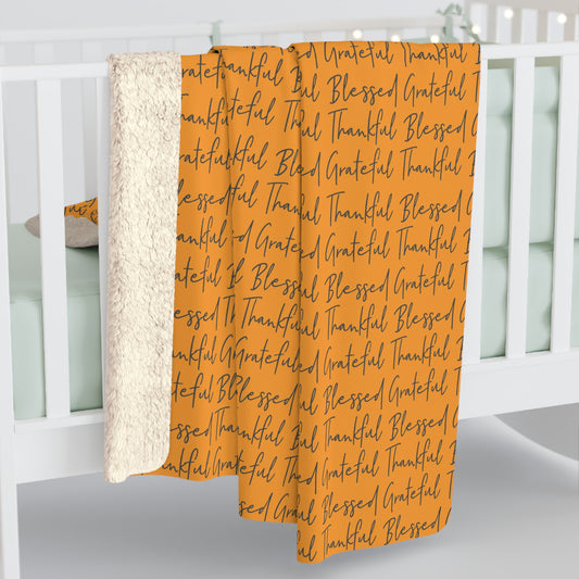 Thankful Blessed Grateful Sherpa Fleece Blanket, Fall Throw Blanket